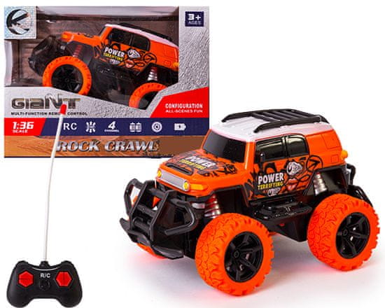 Majhno, oranžno terensko vozilo na daljinsko upravljanje Celoten opis