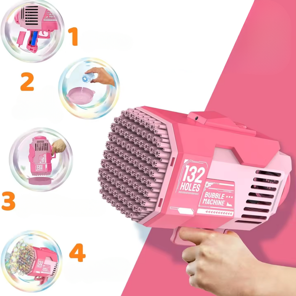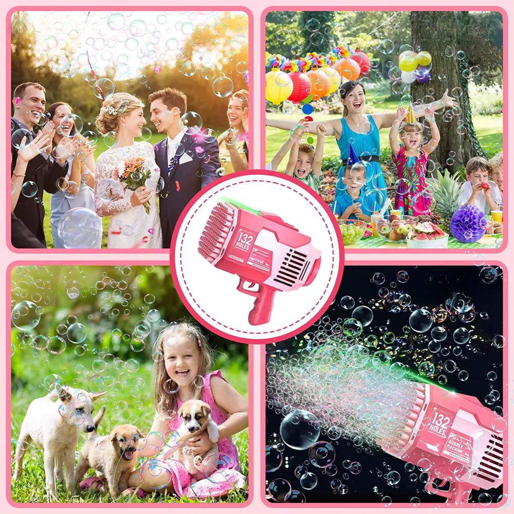 ✨ Inovativna zasnova: pištola za mehurčke z izjemno veliko glavo s kar 132 luknjami, ki proizvajajo mehurčke.