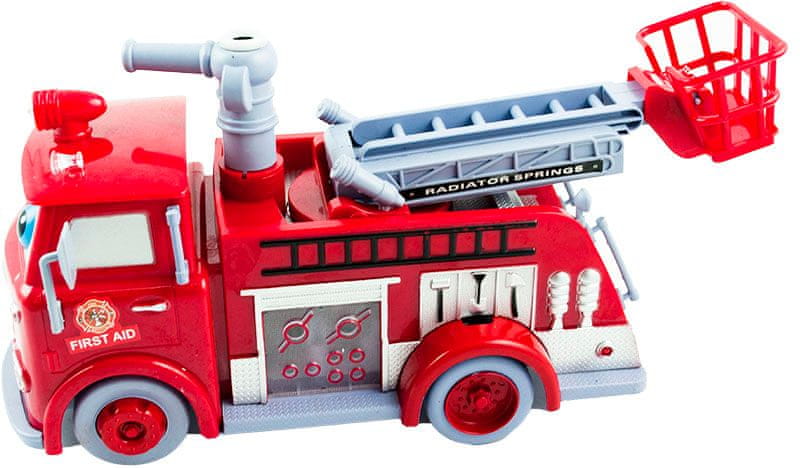 TOVORNJAK Z GASILSKIMI MEHURKI Gasilci pihajo milne mehurčke. Popolna igrača za fantke in punčke. Vozilo napajajo 3 AA baterije (niso priložene). > Zdaj, ko zaženemo avto, vrže v zrak na desetine milnih mehurčkov. Poleg tega se avto vozi sam in spreminja smer, ko naleti na ovire. Premikajo se tudi oči, jezik in drugi deli igrače. Poleg tega ima svetlobne in zvočne učinke. Med vožnjo bomo slišali tudi gasilsko sireno. Popolna ideja za darilo. Paket vsebuje: – Gasilsko vozilo – Plastenka s tekočino za izdelavo milnih mehurčkov – Lijak Dimenzije igrače: 22 × 9 × 15 cm. Dimenzije škatle: 33 × 13 × 19 cm.