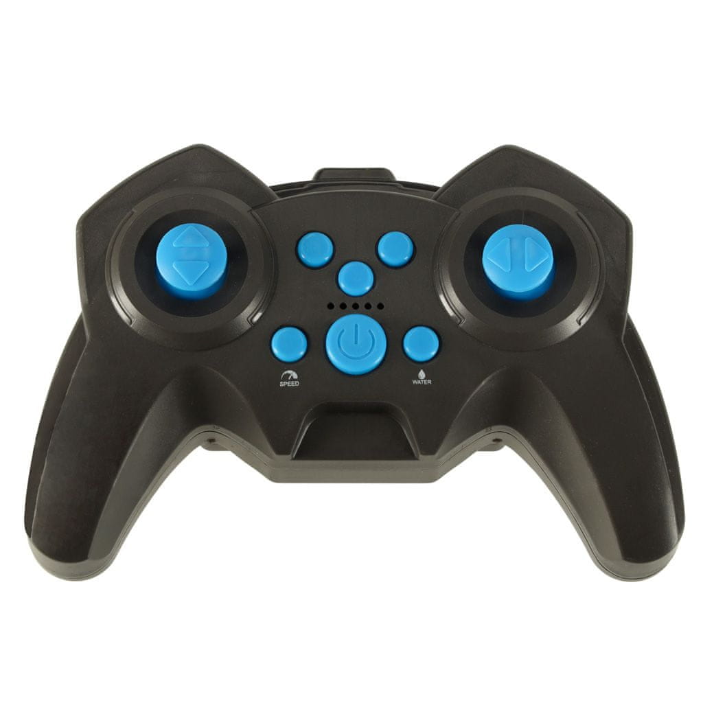 Moder avtomobilček na daljinsko upravljanje, ki strelja vodo: