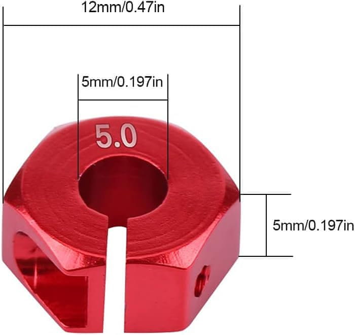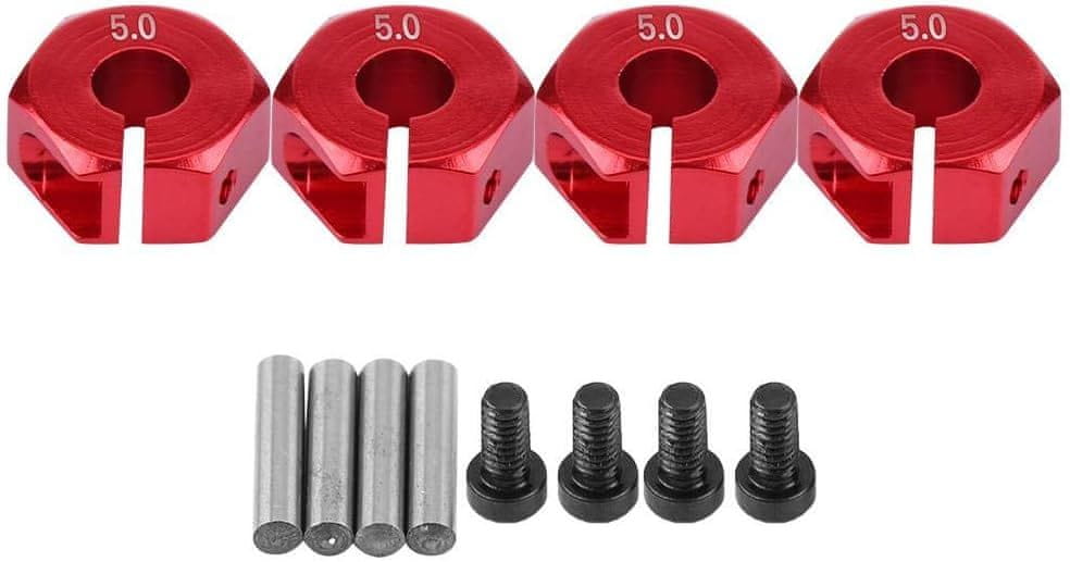 YUNIQUE GREEN-CLEAN šesterokotni adapterji za pesta koles, 12 mm univerzalni za HSP Sakura 1/10 RC avtomobile (4 kose) (5 mm - rdeča)