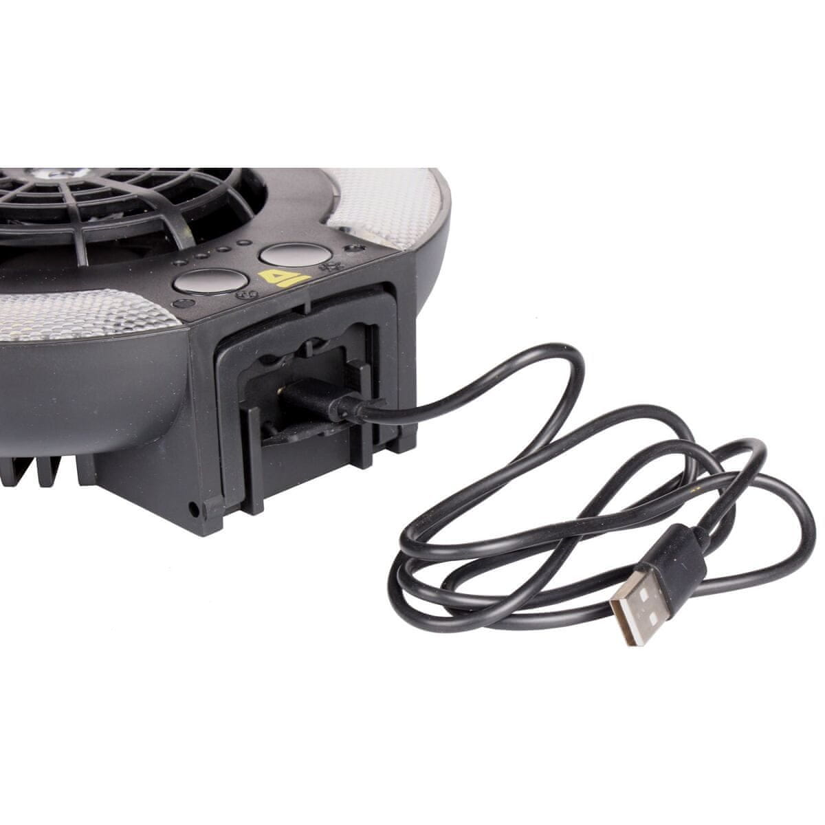 Večnamenska ventilatorska svetilka LED Abbey Camp Monserrat je odličen pripomoček za kampiranje, potovanja, pisarno in dom. S to večnamensko svetilko ne boste imeli le veliko svetlobe, temveč jo lahko uporabljate tudi kot ventilator in banko energije! Svetilka je odporna na škropljenje in ima vgrajeno litij-ionsko baterijo. Svetilko 3v1 sestavljajo 4 luči LED, svetilko pa lahko uporabljate v različnih načinih – zatemnjena svetloba, svetla svetloba, svetloba za odganjanje komarjev in reflektor. Z zatemnjeno lučjo lahko svoje kampiranje resnično naredite bolj prijetno. Svetla svetloba zagotavlja funkcionalno osvetlitev in dobro vidljivost. Poleg tega je na voljo tudi način v rumeni barvi, ki pomaga odganjati komarje.Reflektor lahko uporabljate kot svetilko v temi, pa tudi kot bralno lučko. Ventilator lahko uporabljate tudi v različnih načinih. Poleg luči in ventilatorja ta izdelek deluje tudi kot banka energije. Z vhodom USB-c lahko preprosto polnite različne naprave. Taborniško lučko lahko obesite s plastičnim kavljem na zadnji strani in jo postavite pokonci na mizo, pisalno mizo ali pult. Svetilka za kampiranje se polni prek vmesnika USB, priložen pa ji je polnilni kabel. – Material: ABS – 3 v 1: luč LED, ventilator, banka energije – 2 gumba na sprednji strani – 3 hitrosti ventilatorja: počasna, srednja in hitra – zatemnjena svetloba 70–150 lumnov, temperatura svetlobe 6500k – 4 načini LED: Vgrajena 4000 mAh litij-ionska baterija – polnjenje prek USB-c, priložen kabel – čas praznjenja: svetloba 7,5–14 ur, ventilator 5,5–13 ur – čas polnjenja: < 6,5 ure – mere: 20 × 19,5 × 6,3 cm