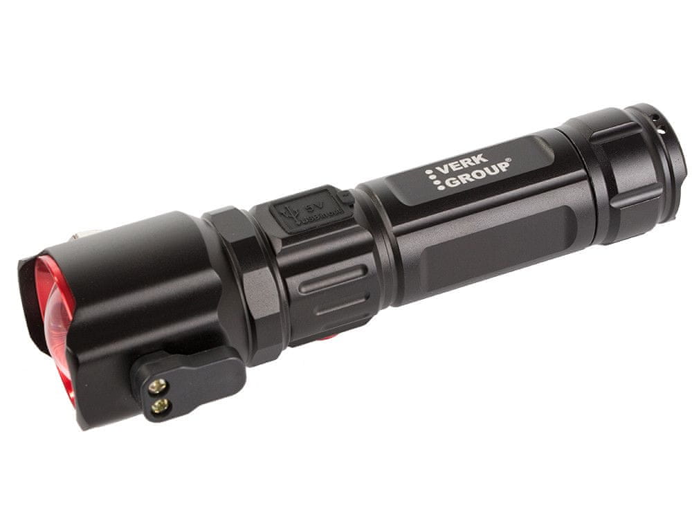 Funkcija zooma – neskončno nastavljiva za spreminjanje goriščne razdalje svetlobe z uporabo leče za ostrenje. To vam daje možnost prilagajanja od ozkega močnega žarka svetlobe z dolgim dosegom 600 m do širokega polja, ki osvetljuje veliko delovno območje. Zaradi teh lastnosti je svetilka neverjetno primerna za vsak teren. Za napajanje svetilke je bila uporabljena visokokakovostna 18650 litij-ionska baterija/celica , ki omogoča dolgo delovanje svetilke.