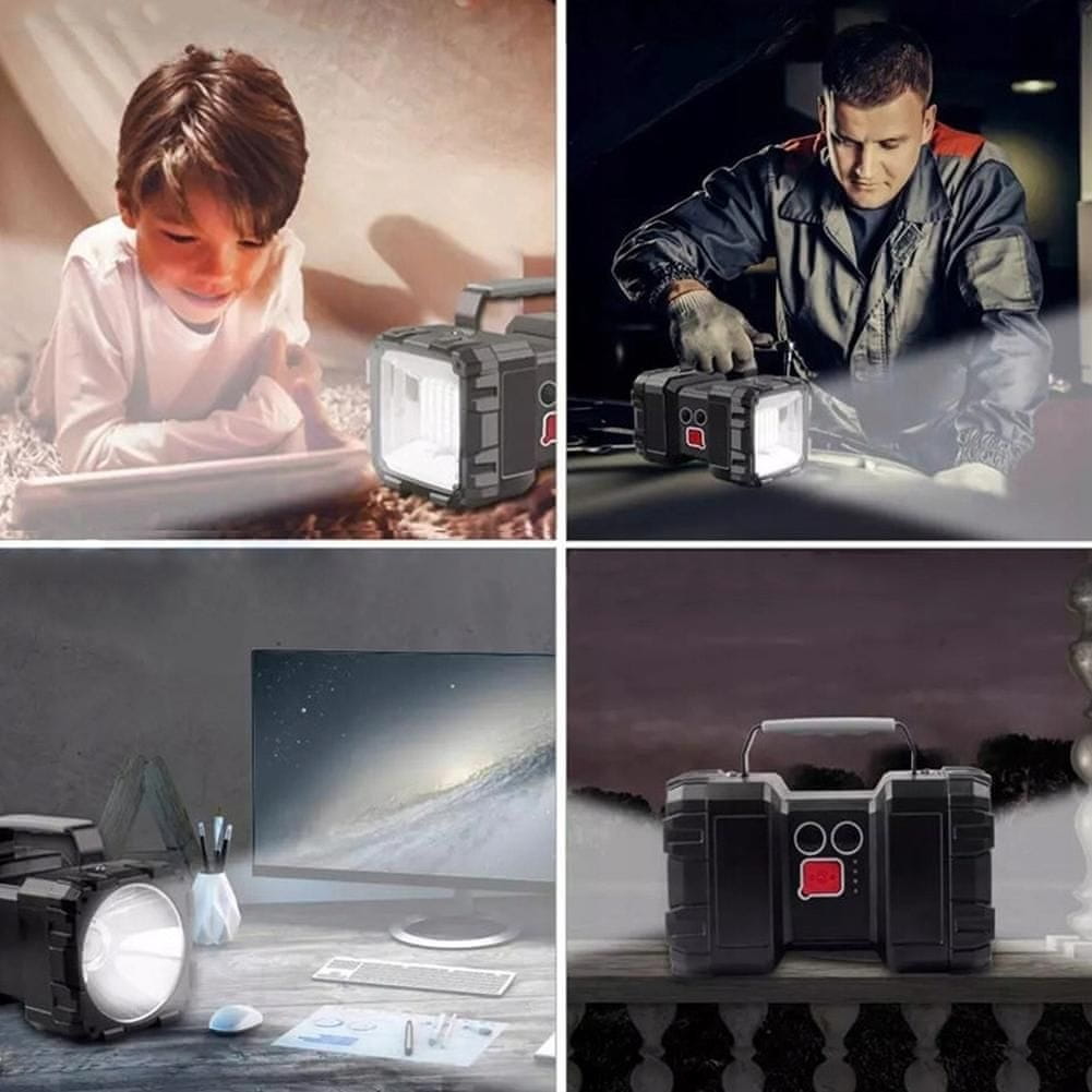 Poleg tega ima ta ročna svetilka vgrajeno tudi 10Ah powerbanko, ki omogoča polnjenje vaših naprav, kot so pametni telefoni, tablični računalniki, prenosni zvočniki in še več. Zmogljiva baterija zagotavlja dolgo življenjsko dobo in omogoča večkratno polnjenje vaših naprav. S priloženim USB kablom lahko enostavno povežete svoje naprave in jih polnite kjerkoli in kadarkoli.