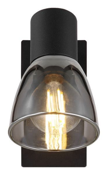 Zidna SPOT svetilka Globo CLAUDE 54307–1 iz kovine v črni barvi ter steklenim zatemnjenim senčilom. Celoten opis