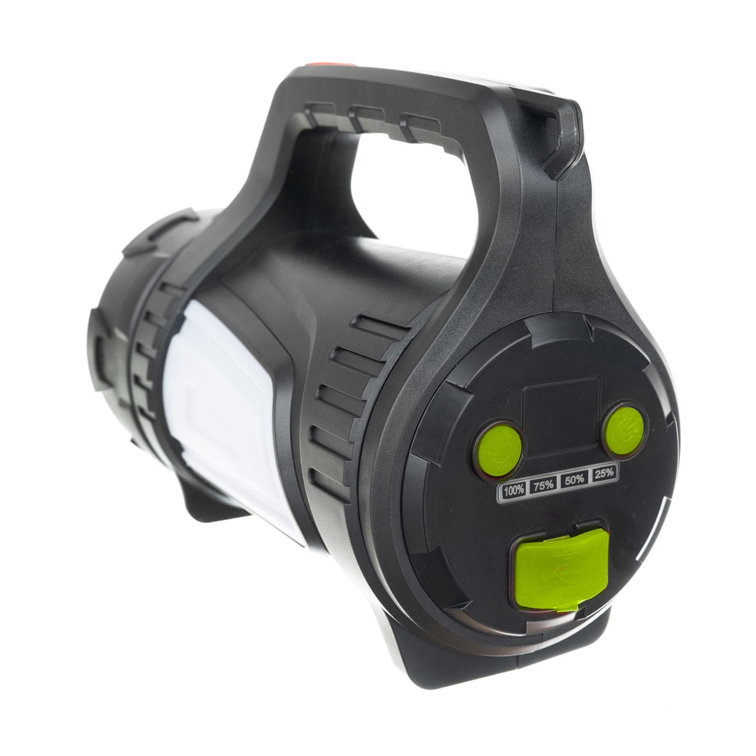 Zaradi svoje zgradbe in delovanja je nenadomestljiv . Vzdržljiva, vodoodporna in prahodporna zunanja svetilka z udobnim upravljanjem in močnim svetlobnim snopom 1200 lm bo osvetlila vsak prostor. Bela in rdeča stranska osvetlitev pomenita, da ju lahko uporabite na primer v težkih situacijah, ko potrebujete pomoč. Močna baterija zadostuje za 6–8 ur neprekinjenega dela, torej če jo potrebujete, tudi za celo noč. Vidni indikator napolnjenosti baterije na zadnji plošči vam bo omogočil hitro oceno napolnjenosti baterije. Funkcija power bank pomeni, da lahko vedno napolnite na primer telefon. Poleg tega ima svetilka priročen ročaj za prenašanje in priložen naramni pas.