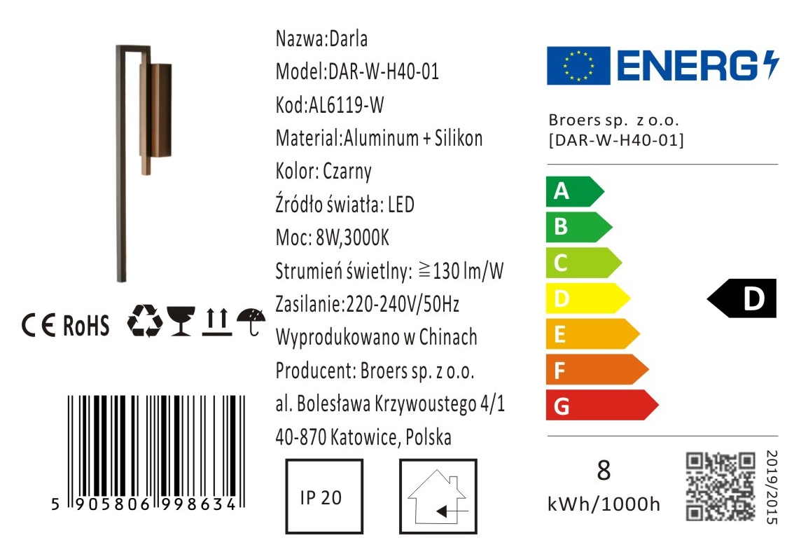 - Estetska oblika: Minimalistična oblika in črna barva naredijo stensko svetilko univerzalno rešitev za številne prostore.