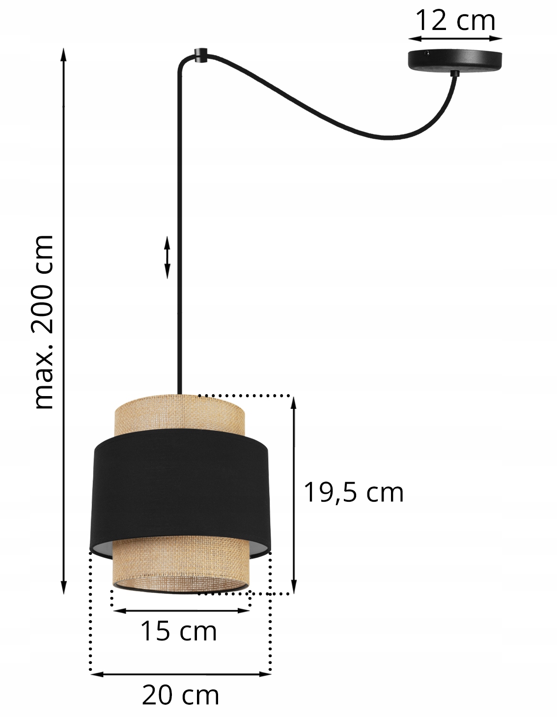 skupna višina največ 200 cm