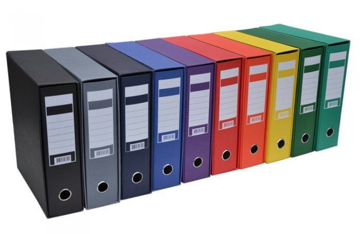 Izdelana iz triplastnega valovitega kartona. Gostota kartona: pribl. 390g. Kapaciteta približno 700 listov (80g). Izdelana tako, da lahko shranite posamezen registrator ali mapo. Lahko stoji pokončno ali vodoravno. Kadar niso v uporabi, jih lahko zložite, zelo enostavno sestavljanje. Možnost.
