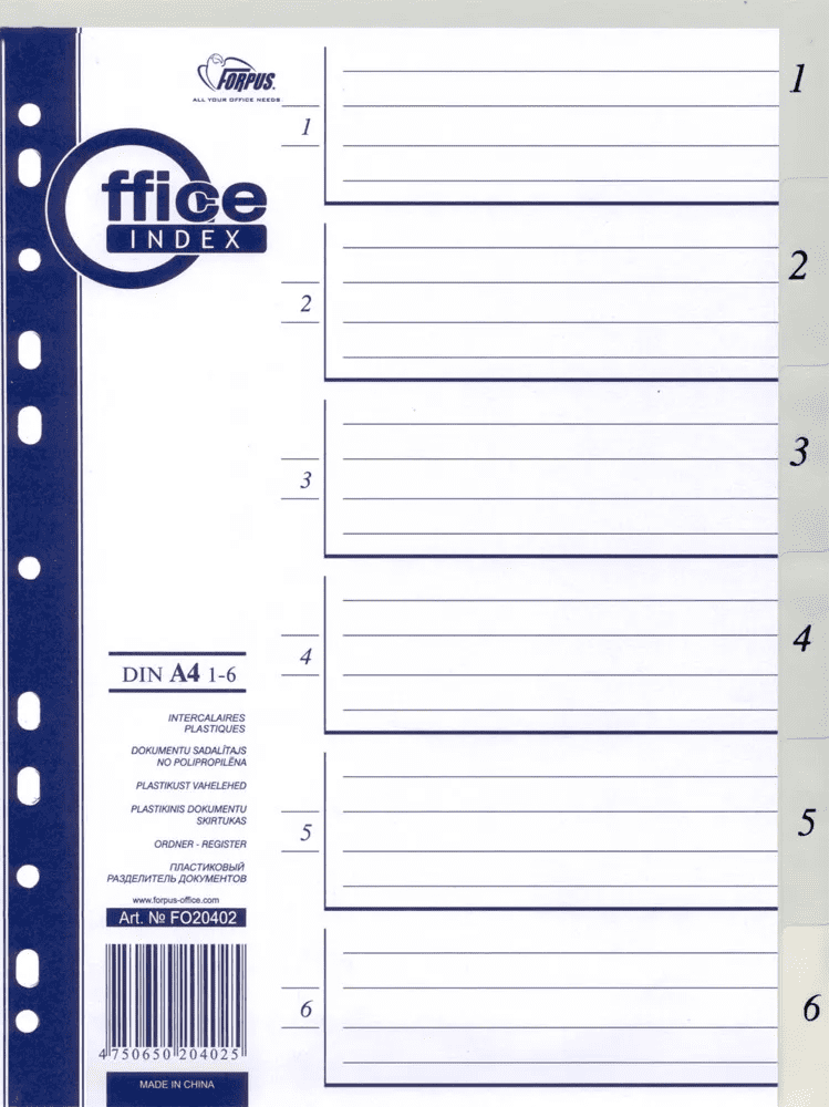 Forpus Ločilni listi A4 PP 1-6, sivi
