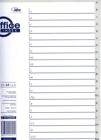 Forpus Ločilni listi A4+ PP A-Z, sivi