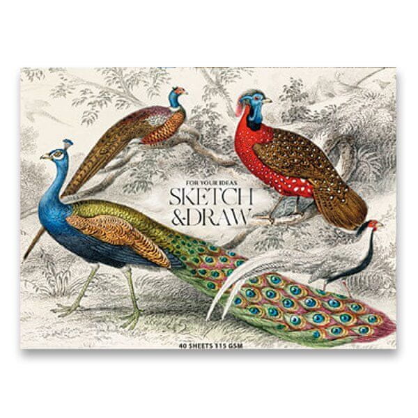 Skicirka A5+ (178 × 240 mm) ima lepljene plošče na daljši strani skicirke. Lep čist papir v beli barvi. Serija Risanje (115 g papirja) je primerna za likovne tehnike s svinčnikom, peresom, pastelom, ogljem in čopičem. Format: A5+, 40 listov