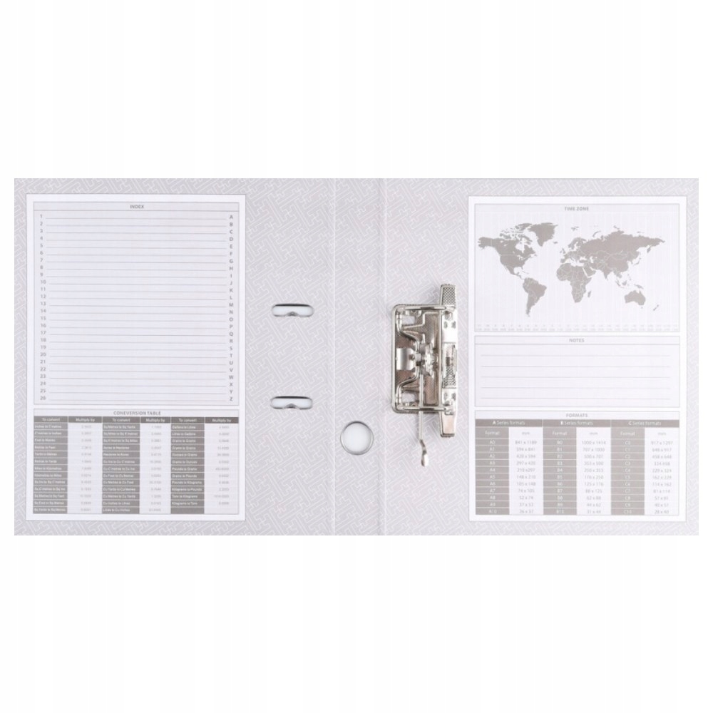 • notranji papirni konica s kazalom, tabelo formatov, zemljevidom časovnih pasov in prostorom za opombe