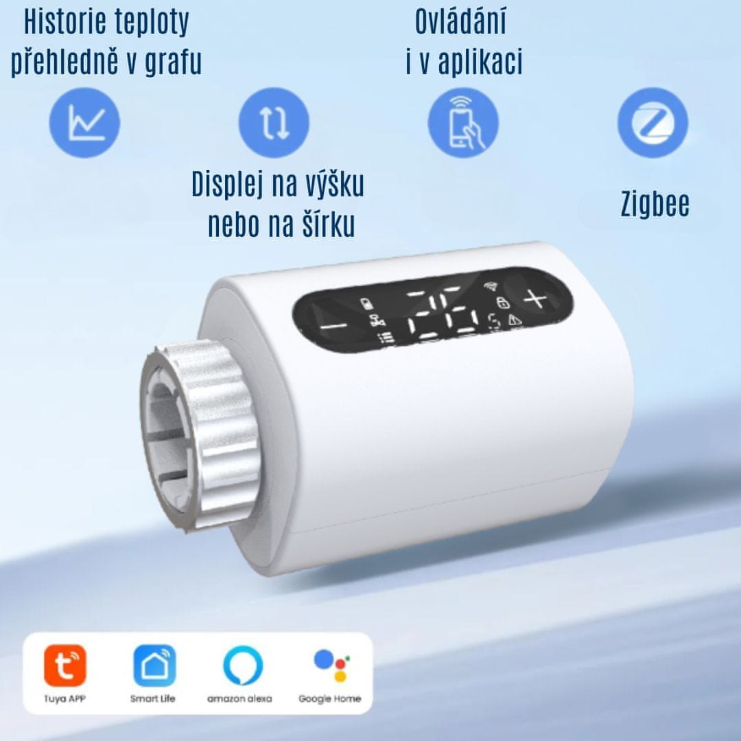 Pametna termostatska glava nadzoruje ogrevanje vašega doma in optimizira porabo energije. S pametnim telefonom lahko kjer koli in kadar koli nadzorujete in prilagajate ogrevanje doma v temperaturnem območju od 5 do 35 °C s toleranco 0,5 °C. Celoten sistem uporablja brezplačno priljubljeno aplikacijo Tuya Smart. Če torej v prihodnosti načrtujete več pametnih naprav in upravljalnikov v svojem domu, je ta izdelek pravi za vas.