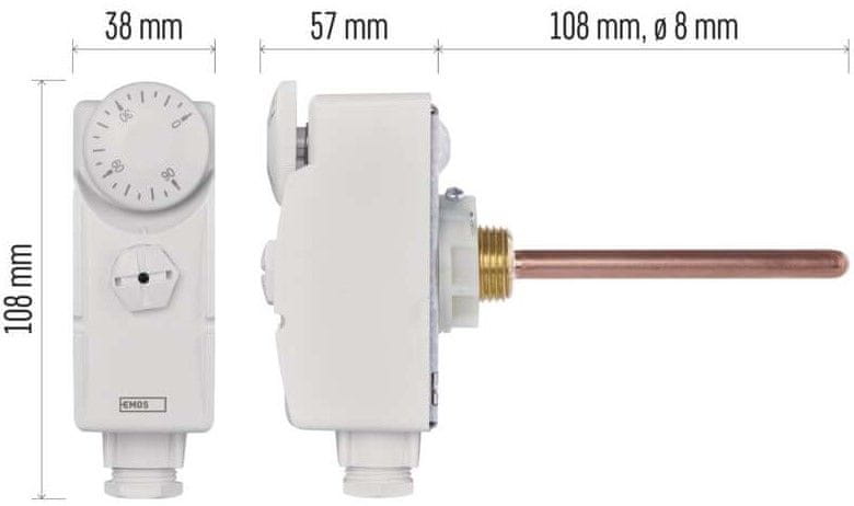 EMOS P5685 potopni termostat, 57×38×108 mm, 0 °C – 90 °C, bel Celoten opis