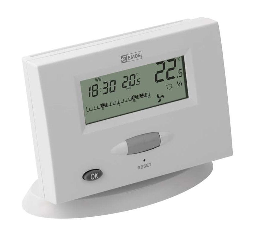 Brezžični sobni termostat Emos T13RF omogoča regulacijo tako ogrevalnih kot hladilnih sistemov. Omogoča nastavljanje temperature med 5 °C in 30 °C. Celoten opis