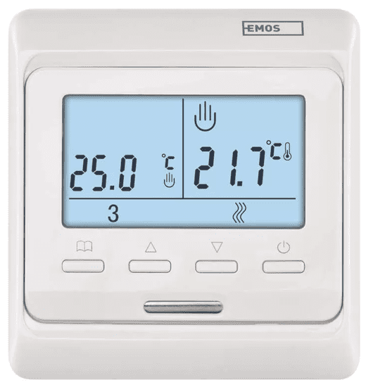 Uživajte v stabilni temperaturi v gospodinjstvu poleti in pozimi. Nič več temperaturnih nihanj, le prijetna toplota brez skrbi. Sobni termostat s programiranimi nastavitvami nadzoruje idealno temperaturo in uravnava talno gretje podnevi in ponoči. Razpon nastavitev temperature od 5 °C do 95 °C zagotavlja prijetno temperaturo poleti in pozimi. Prednosti so tudi preprosto upravljanje in jasen osvetljen zaslon z velikimi številkami ter informacijami o trenutni in želeni temperaturi. Termostat je opremljen s 3 m dolgim kablom. Temperaturo na termostatu lahko nastavite v korakih po 0,5 °C. Digitalni termostat meri tudi trenutno sobno temperaturo med 0 °C in 99 °C z natančnostjo 0,1 °C.