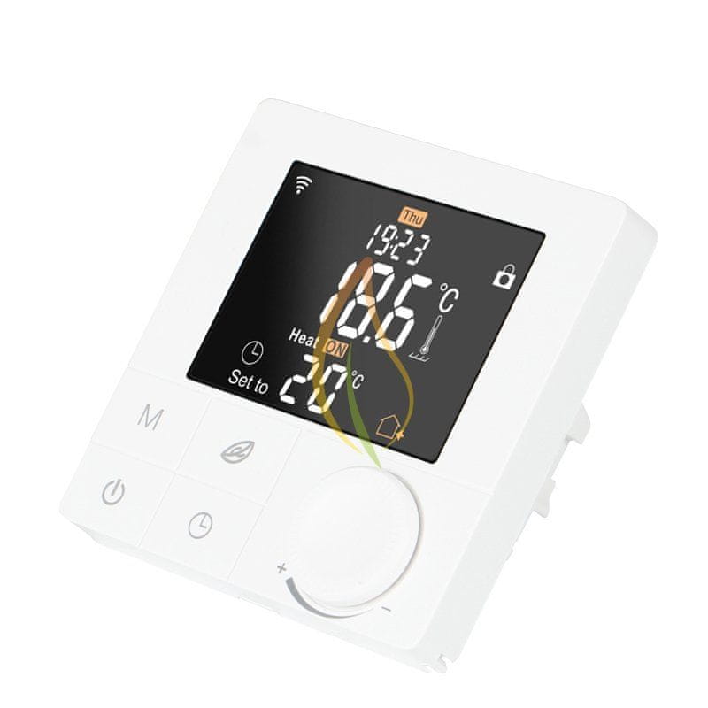 Sobni termostat WT8 WiFi je optimiziran za upravljanje električnih sistemov talnega ogrevanja in električnih grelnih naprav, kot so infrardeče grelne plošče, konvektorji in ventilatorski grelnik. Upravljanje je preprosto in priročno preko gumbov za upravljanje na dotik in osvetljenega zaslona na enoti ali prek brezplačne aplikacije TuyaSmart. Tako lahko kadar koli od koder koli nadzirate želeno temperaturo ter si ogledate in nastavite vse pomembne parametre.