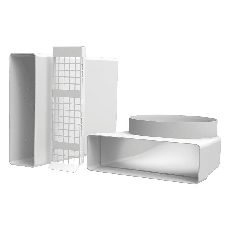 Komplet kvadro kanala je idealna rešitev za diskretno in estetsko montažo odvoda in dovoda zraka lokalnega rekuperatorja v špaleto, saj odpravlja potrebo po vidnih maskah na fasadi. Njegov minimalističen dizajn se popolnoma zlije z objektom, hkrati pa omogoča enostavno in hitro montažo. S tem sistemom ohranite urejen videz vašega doma brez kompromisov pri učinkovitosti prezračevanja.