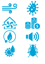 - Vzdrževanje regeneracije toplote in ravnovesja vlage v prostoru