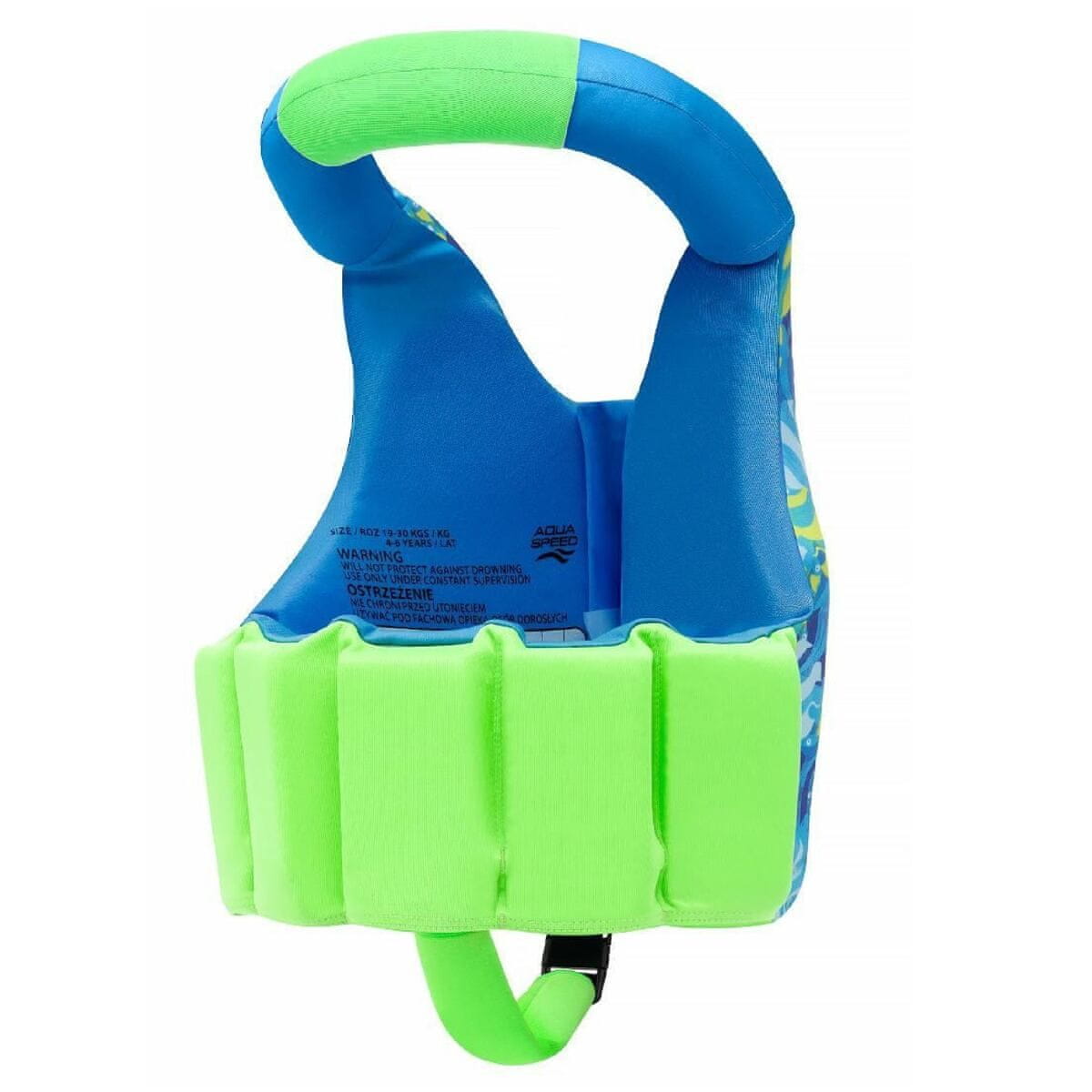 Vodni jopič AquaSpeed Aqua Pals za otroke s pisanimi vzorci je odlična izbira za male navdušence nad vodnimi pustolovščinami. Vest je izdelan iz najkakovostnejših materialov, pri čemer je upoštevana največja varnost. Vest je izdelan v dveh velikostih za otroke, stare od 2 do 3 let (15–19 kg) in od 4 do 6 let (19–30 kg). Ta jopič je udoben plavalni pripomoček, ki zagotavlja svobodo gibanja in otrokom pomaga pridobiti samozavest pri učenju plavanja in interakciji z voda. Ko je jopič pravilno oblečen in nameščen, zagotavlja optimalno plovnost. Ko otrokova samozavest in plavalne spretnosti rastejo, se lahko posamezni bloki pene na hrbtni strani jopiča odstranijo, da se zmanjša plovnost. Druga prednost je ovratnik iz pene, ki podpira otrokovo glavo. – Visokokakovostni materiali – ovratnik podpira otrokovo glavo in jo ohranja nad vodo – nastavljiv vzgon – ergonomska in lahka zasnova, ki ne omejuje gibanja – enostavna uporaba zapenjanja – zaponke, ki preprečujejo nenamerno odpenjanje – privlačna barva in privlačen dizajn – dodatni trak za mednožje – hitro sušeč se material – idealen za učenje plavanja in igro v vodi – idealen za bazen, plažo in vrtni bazen – 100 % poliester, 100 % polietilensko polnilo Opozorilo: Ta telovnik je plavalni pripomoček, ni rešilni jopič! Ta izdelek se lahko uporablja le na območjih, kjer lahko plavalec stoji. Tudi v plitvem bazenu lahko pride do utopitve, zato otrokom nikoli ne dovolite, da plavajo brez nadzora odraslih in usposobljenih oseb!