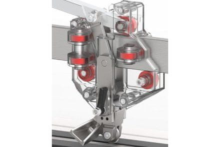 • drsni voziček vodi 9 krogličnih ležajev, od katerih so 4 nastavljivi (za zagotavljanje popolnega gibanja in natančnosti rezanja
