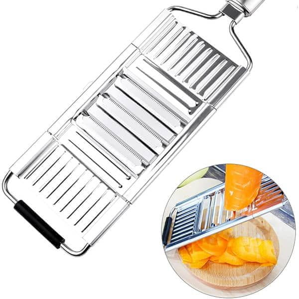 Inovativna kombinacija izjemno ostrih rezil in ergonomskega ročaja vam omogoča, da vso zelenjavo pripravite 8-krat hitreje v primerjavi z ročnim rezanjem! Prihranite čas in z eno potezo narežite več rezin bučk, korenja, krompirja, pese, čebule ali paradižnika!