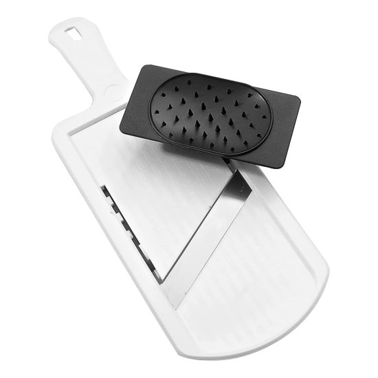 UNIVERZALEN REZALNIK FACKELMAN lahko trdo zelenjavo ali sadje hitro spremeni v fine rezine za nadaljnjo obdelavo v solatah, enolončnicah, jogurtih in juhah. Izdelan je iz varne plastike in izjemno ostrim rezilom iz nerjavečega jekla, ki ga lahko uporabite na obeh straneh. Z malo truda boste narezali bučke, korenje, zelje, krompir, kumare in še veliko več. Praktični ročaj zagotavlja optimalno držanje med ribanjem. Zahvaljujoč rezilu, nastavljivemu po višini, je mogoče naribati tanke ali debele rezine, odvisno od nastavitve – od 1 mm do 6 mm. S priloženim držalom bodo vaši prsti zaščiteni, hkrati pa boste živilo lahko naribali v celoti. Po uporabi ga ročno operite in shranite na varno mesto.