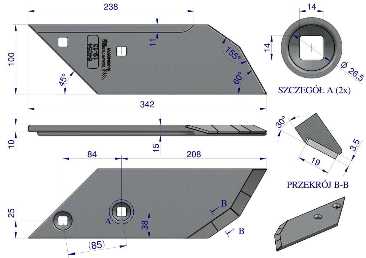 Delovni deli znamke Waryński so izdelani iz izjemno trpežnega in na obrabo odpornega borovega jekla, ojačanega s ploščami iz volframovega karbida. Vsaka pošiljka, tudi najmanjša, je opremljena s certifikatom o materialni sestavi. Kombinacija visokokakovostnega borovega jekla in karbidnih plošč zagotavlja podaljšano življenjsko dobo. Izdelki Waryński prihranijo stroške, zmanjšajo obrabo in zmanjšajo potrebo po zamenjavi delovnih delov. Da bi zagotovili vzdržljivost naših izdelkov in zadovoljstvo strank, je proizvodni proces dlet Waryński podvržen strogim pregledom.