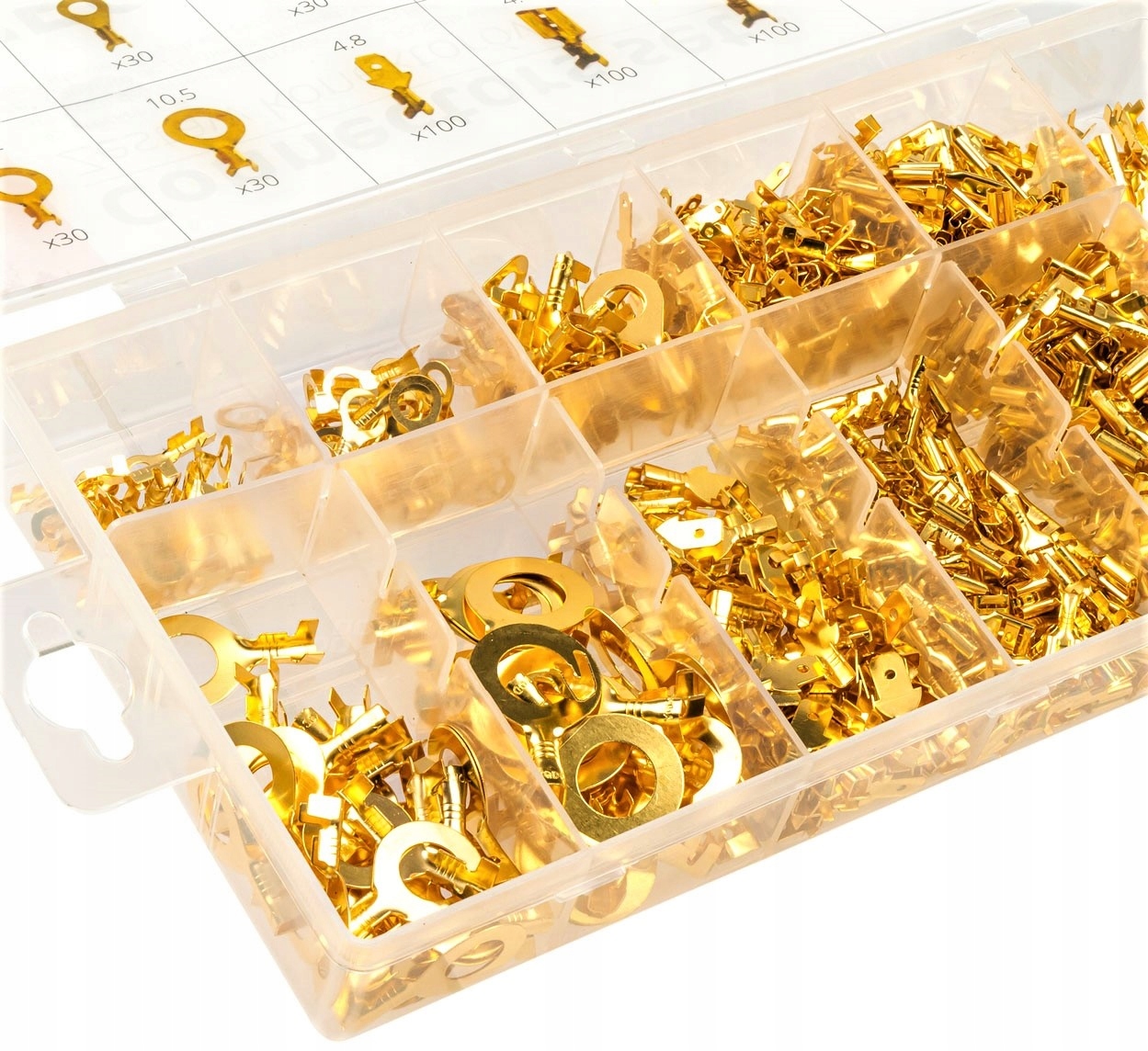 Kompleti so pakirani v prozorne plastične škatle, razvrščeni po velikosti, kar omogoča enostavno preverjanje števila konektorjev.