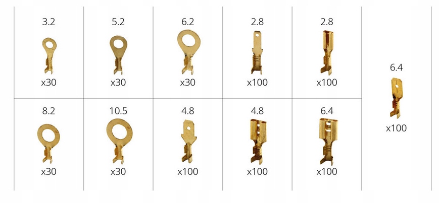 KOMPLET MEDENINASTIH AVTOMOBILSKIH KONEKTORJEV – MOŠKI, ŽENSKI, Z OČESNIMI VTIČKI