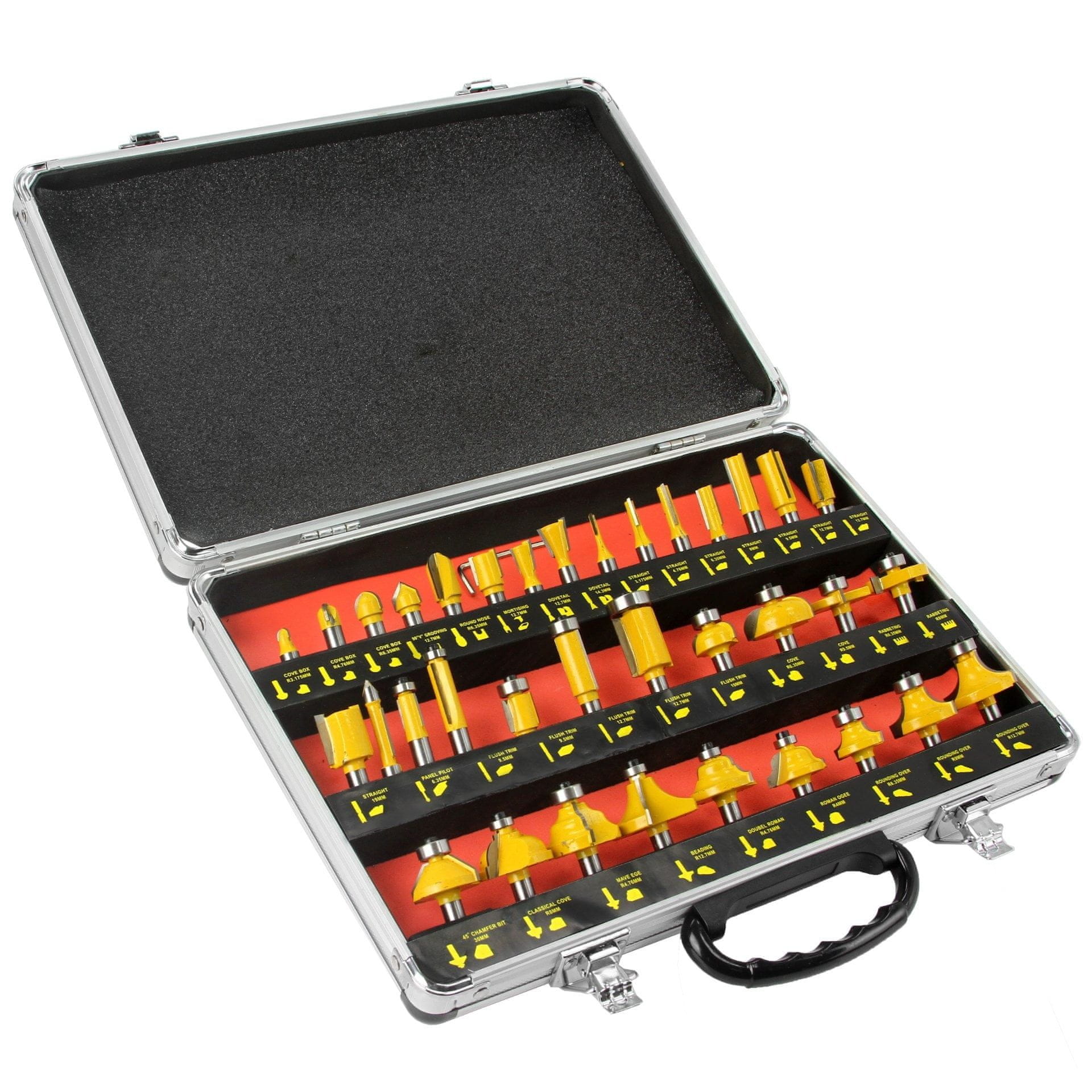 35-delni set rezkarjev v alu kovčku 8mm je popoln komplet za vsakega profesionalnega ali domačega mojstra. Set vsebuje 35 različnih rezkarjev, ki so primerni za obdelavo lesa, plastike, aluminija in drugih materialov. Rezkarji so izdelani iz visoko kakovostnega trdokovinskega jekla, kar zagotavlja dolgo življenjsko dobo in natančno obdelavo. Alu kovček omogoča enostavno shranjevanje in prenašanje rezkarjev, hkrati pa ščiti pred poškodbami. S tem setom boste imeli vse, kar potrebujete za natančno in kakovostno obdelavo materialov.