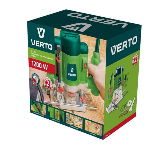 Rezkalnik VERTO z učinkovitim 1200 W motorjem je vsestranski, saj omogoča rezkanje utorov, robov in profilov ter izdelavo vzdolžnih lukenj.