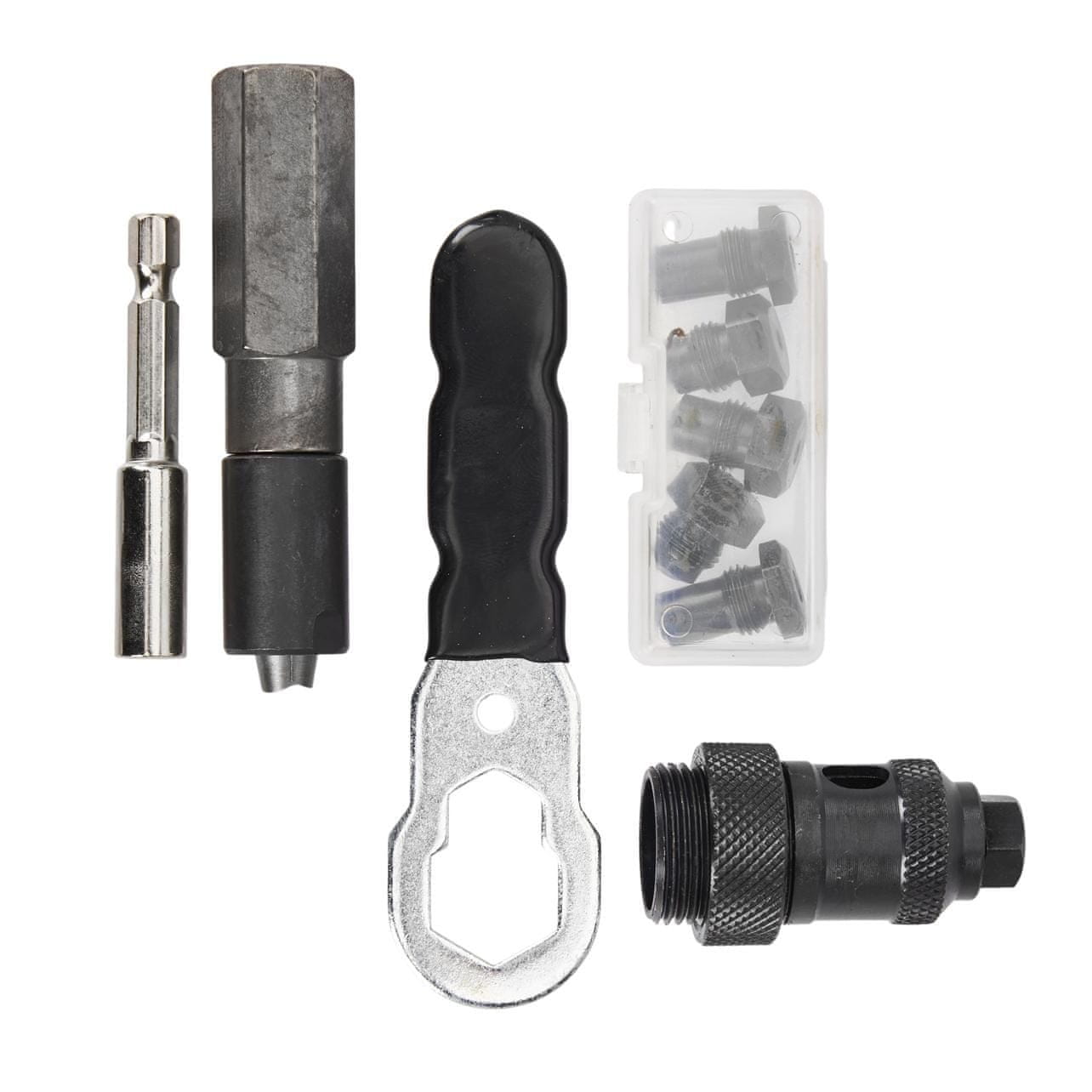 3v1Blagovne znamkeKraft&DeleModelKD5470z adapterjem za zakovice in zakovice je to inovativno orodje zasnovano za zagotavljanje hitre in zanesljive povezave komponent v širokem spektru aplikacij.    Iz visokokakovostnega krom-molibdenovega jekla (CrV-Mo)
