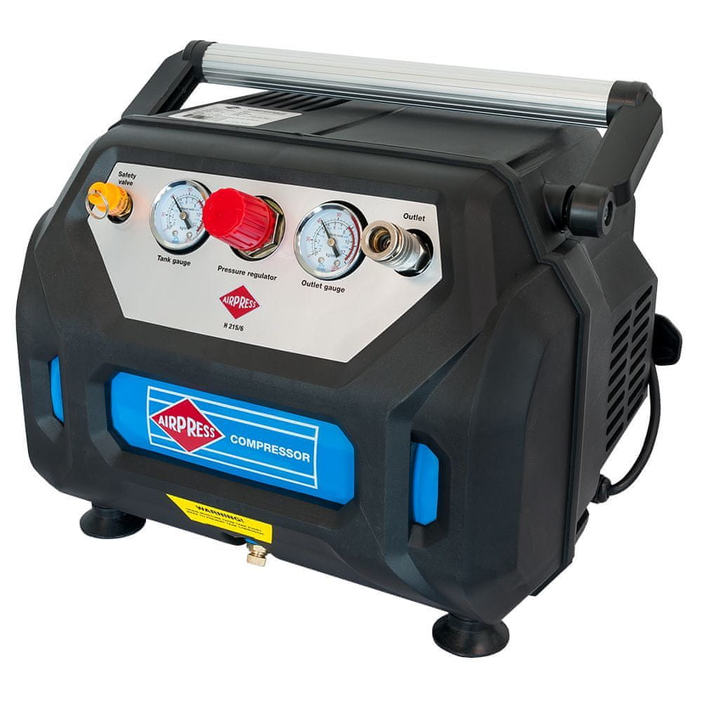 Brezoljni kompresor. Priročen model kompresorja, idealen za majhne potrebe po stisnjenem zraku. Zaradi majhne velikosti je naprava zelo enostavna za transport. Ta model je še posebej namenjen hobistom, ki nimajo garaže, za tlačne preizkuse v majhnih instalacijah, za izpihovanje elektronskih naprav itd.