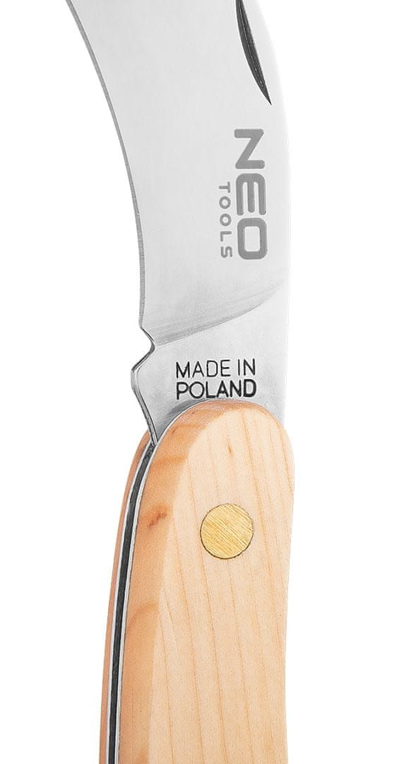 Nož NEO 63–016 Sierpak z lesenim ročajem je poljski nož Sierpak s skupno dolžino 180 mm in elegantnim ročajem iz jelše. Nož se ponaša z brezčasnim vintage videzom, zaradi česar je odlično darilo. Lesen ročaj zagotavlja trden oprijem in nedrseče lastnosti. Je prijeten na dotik in se varno prilega roki. Priporočljiv za nabiranje gob, uporabo v delavnici ali prenove. Blagovna znamka NEO ponuja visokokakovostne izdelke, ki bodo zdržali več sezon.
