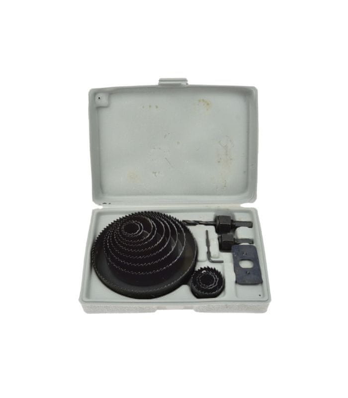 Opis seta: • Komplet kronskih žag za rezanje lesa, mavčnih plošč, ivernih plošč in plastike • Vključuje 12 žag različnih premerov: 19, 22, 29, 32, 38, 44, 51, 64, 76, 89, 102, 127 mm