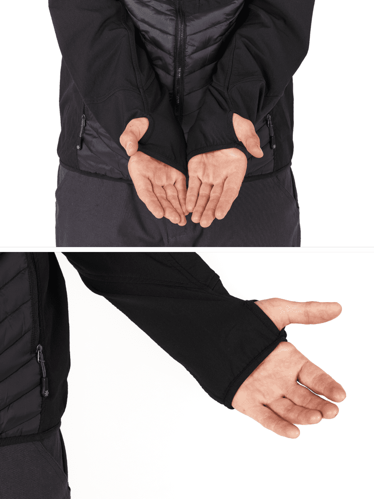 Mehka in udobna kapuca z elastično vrvico za popolno prileganje. Odprtina za palec na manšeti za udobje in toplotno izolacijo. Elastične manšete in rob za varno prileganje in zaščito pred mrazom. Elastičen prsni žep za shranjevanje manjših predmetov. Notranji prsni žep za dragocenosti. Stranski žepi z zadrgami za varno shranjevanje. Prevleka z zadrgo na vrhu vratu za dodatno udobje.