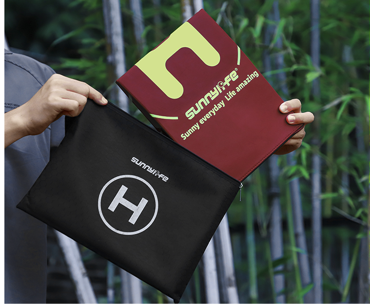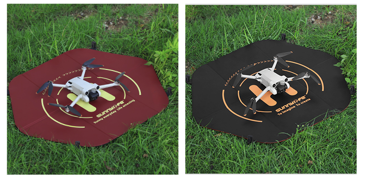 Pristajalna ploščad je eden najpomembnejših dodatkov za vsakega lastnika drona. Med vzletom in pristankom se sproščajo delci peska in prahu, ki zaidejo v motorje, gimbal, kamero in druge komponente drona ter povzročijo škodo. Vzleti in pristanki se morajo vedno izvajati s pristajalne ploščadi. Zložljiva zasnova! Podloga zaradi svoje