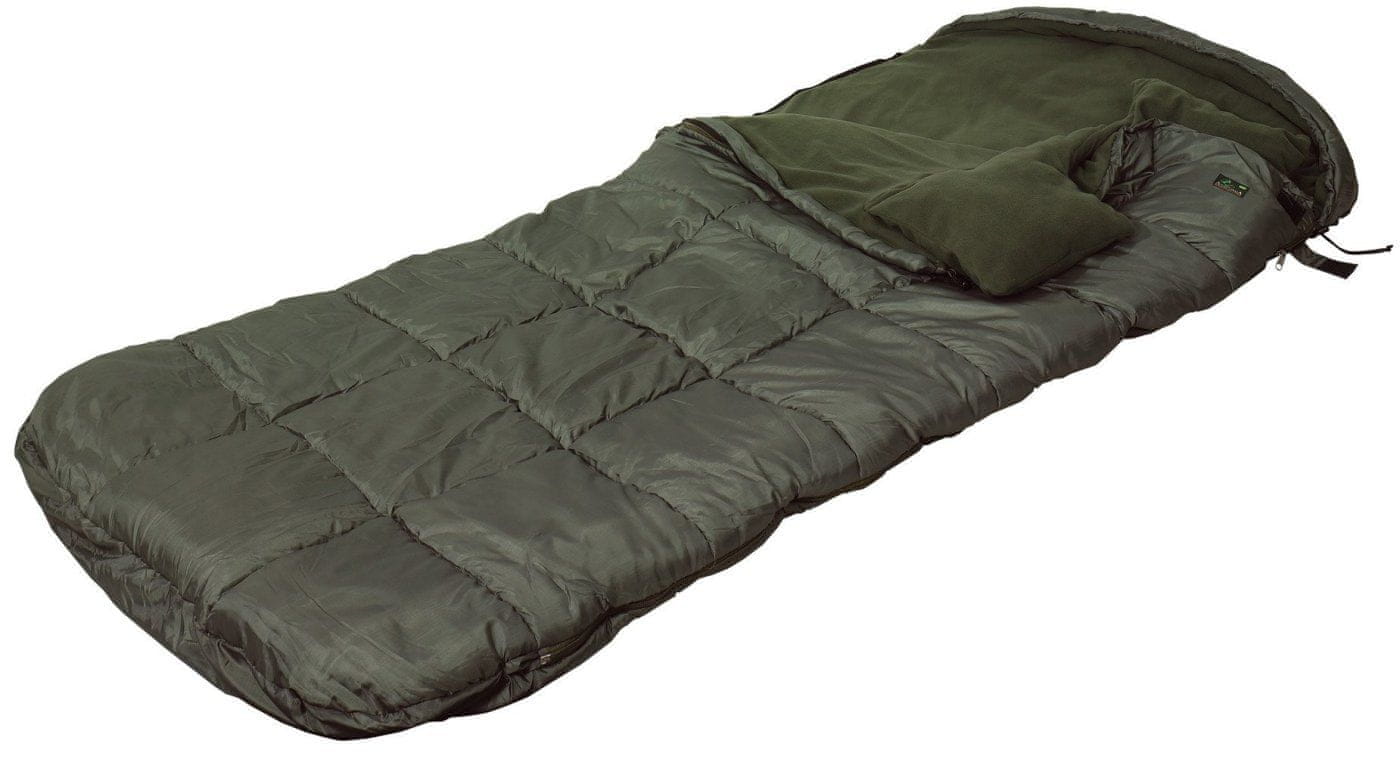 Na hrbtni strani spalne vreče je všit trak, s katerim jo lahko trdno pritrdite na ležalnik. Na delu za glavo in noge ima rob, ki ga lahko potegnete čez dele ležalnika, da ponoči ne zdrsnete z njega, in tudi ko hitro vstanete do rešetk, se ne boste umazali z blatom. Spalna vreča je preizkušena pri temperaturah okoli –5 °C, zato vam tudi pozno jeseni ni treba skrbeti, da bi se odpravili na ribolov.