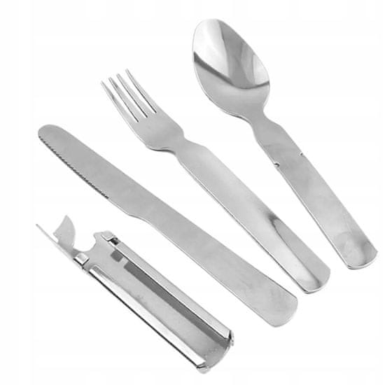 TURISTIČNI PRIBOR JEDILNI PRIBOR VILICE ŽLICA 4V1 JEKLO SKAVT VOJAŠKI