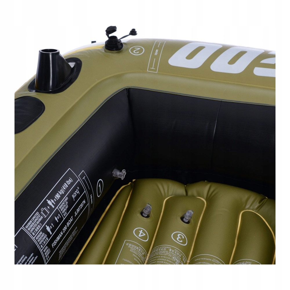 Napihljivi čoln je zasnovan za udoben ribolov in ima prostor za ribiške palice. Bostonski ventili zagotavljajo hitro napihovanje in zlaganje napihljivega čolna.