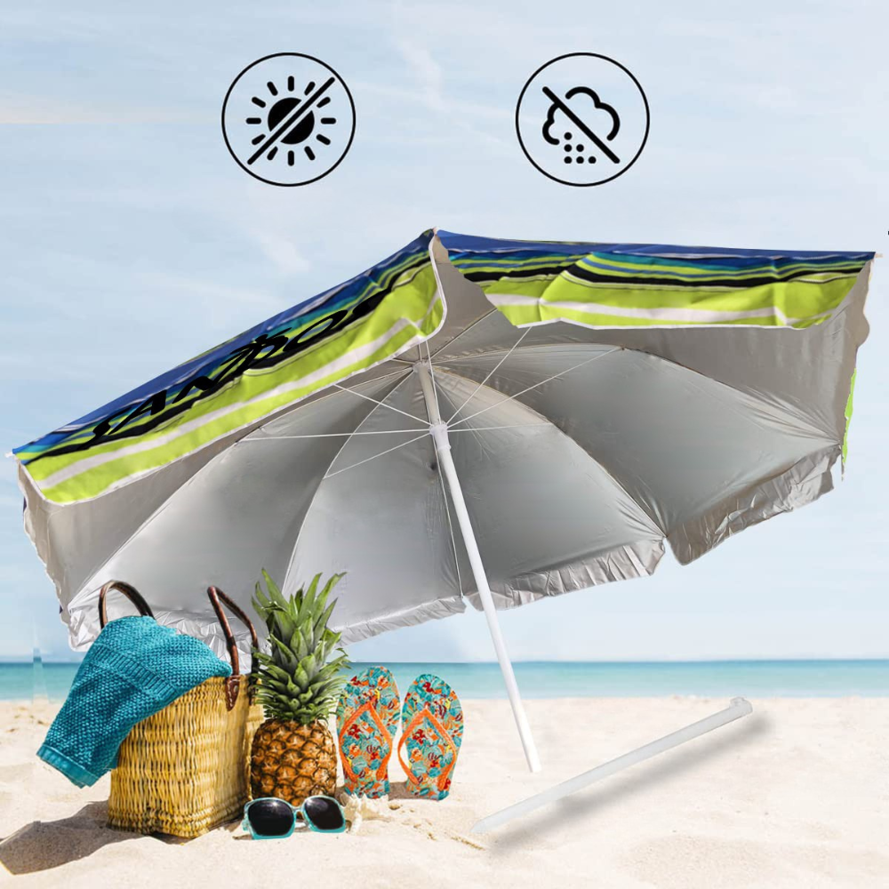 koničasto konico za lažje vstavljanje v tla. Ponujamo tudi posebno podlago, ki se privije, in vam omogoča, da dežnik trdno vstavite v pesek! ☀️ DVOJNI UV MATERIAL ☀️