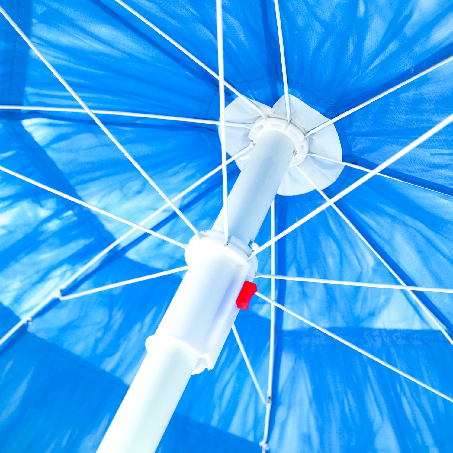 ☀️Dežnik je opremljen s koničasto konico za lažje vstavljanje v tla. Ponujamo tudi posebno podlago, ki se privije, in s katero lahko dežnik trdno vstavite v pesek!