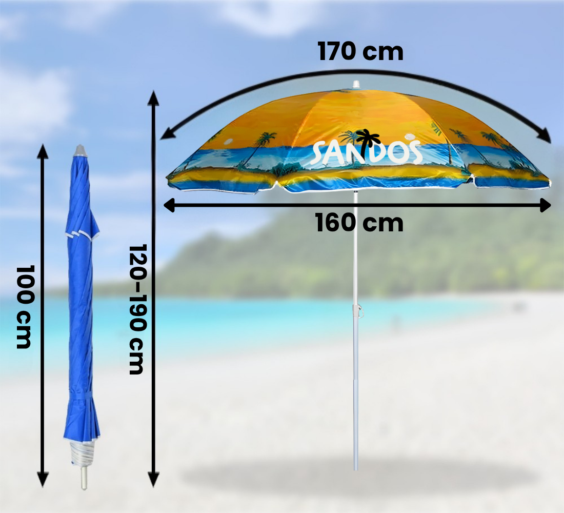 SANDOS senčnik za plažo je priljubljen dodatek za vsakega navdušenca nad plažo! Brezčasen videz skupaj s kombinacijo najkakovostnejših materialov vam bo služil dolgo časa.