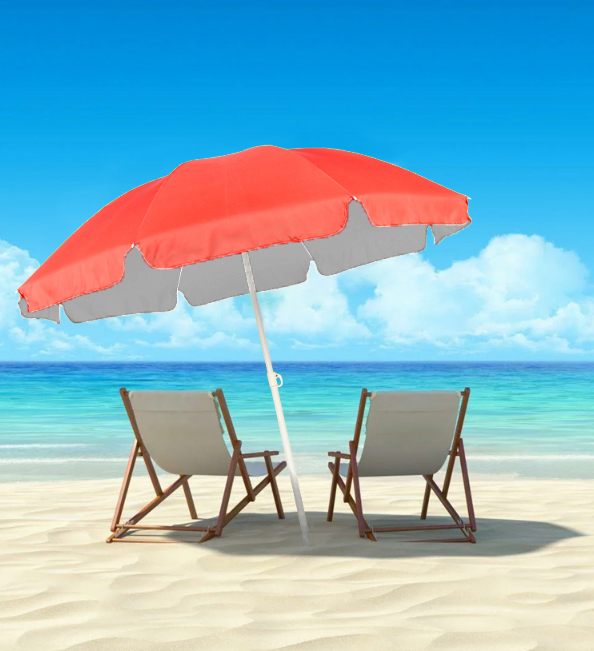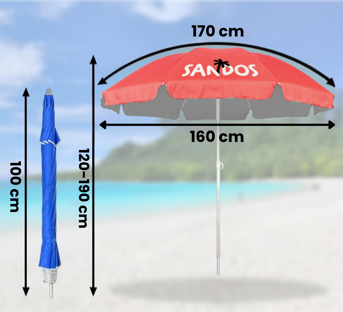– za uporabo na plaži, kampiranju, na parceli, balkonu ali vrtu! ☀️ Dežnik je opremljen s koničasto konico za lažje vstavljanje v tla. Ponujamo tudi posebno, privijačeno podlago, ki omogoča trdno vstavljanje dežnika v pesek!