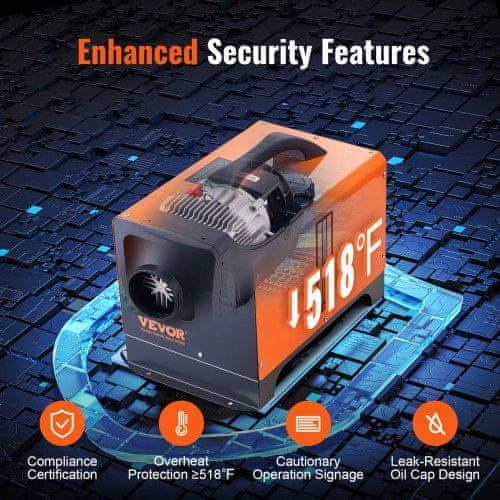 Ta prenosni dizelski grelnik zraka zagotavlja hitro in učinkovito ogrevanje za vozila in čolne, zaradi česar je idealen za kampiranje in potovanja. Ima daljinski upravljalnik in LCD zaslon za enostavno upravljanje. Dimenzije: 40×25×31 cm. Celoten opis