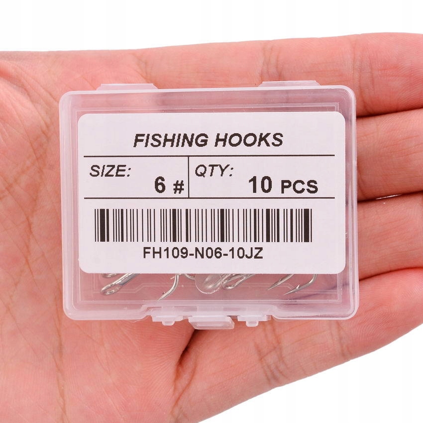 Vsak komplet vsebuje 10 trojnih trnkov, ki so idealni za različne tehnike ribolova. Praktična škatla omogoča enostavno shranjevanje in organizacijo vaše opreme, njena prosojnost pa omogoča hiter pregled vsebine, ne da bi jo bilo treba odpreti. Škatla je zasnovana za maksimalno udobje in varnost.