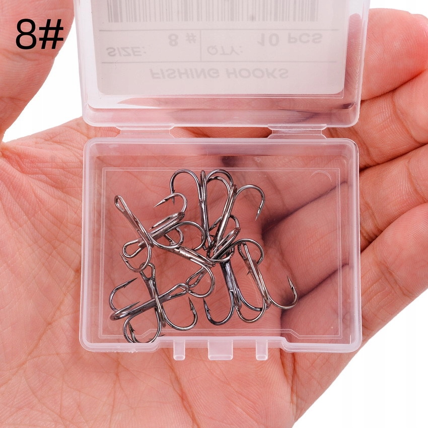 Vsak komplet vsebuje 10 trojnih trnkov, ki so idealni za različne tehnike ribolova. Praktična škatla omogoča enostavno shranjevanje in organizacijo vaše opreme, njena prosojnost pa omogoča hiter pregled vsebine, ne da bi jo bilo treba odpreti. Škatla je zasnovana za maksimalno udobje in varnost.