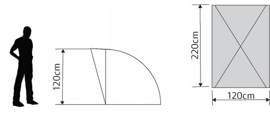 Šotor je izdelan iz trpežnih in lahkih materialov, ima veliko površino za sedenje, zložen pa zavzame malo prostora in tehta le 1,1 kg. Zahvaljujoč uporabi visokokakovostnih materialov je zaščita pred vetrom in soncem odlična.